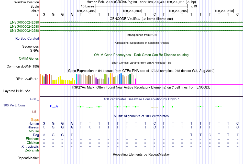- IRF1[chr7:128200490-128200511]