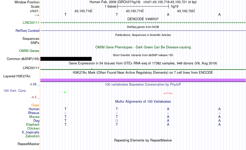- MYB[chr21:43100718-43100721]