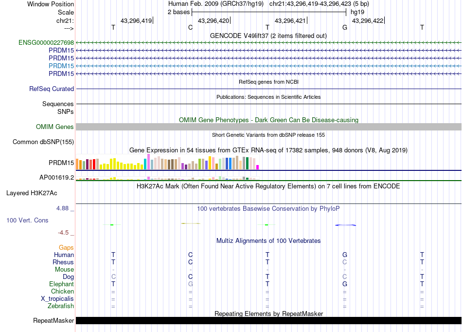 - NFE[chr21:43296419-43296423]