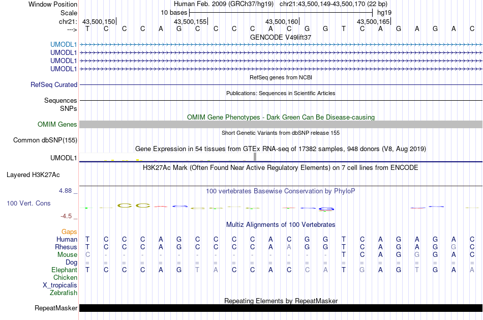 - REST[chr21:43500149-43500170]