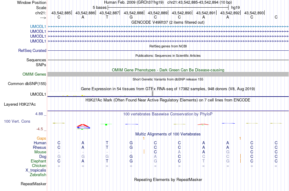 - HIC2[chr21:43542885-43542894]