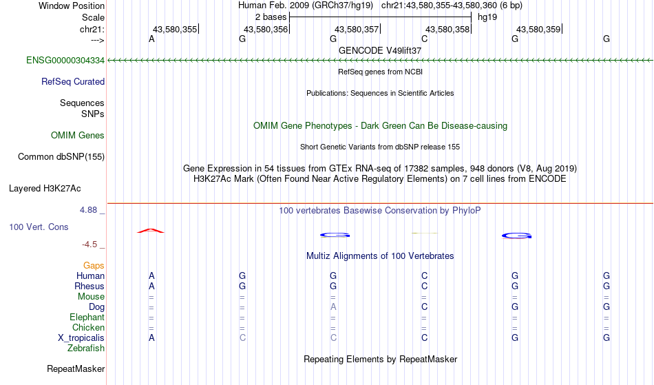 - SP1[chr21:43580355-43580360]