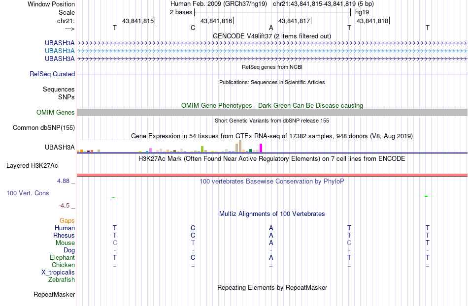 - YY1[chr21:43841815-43841819]