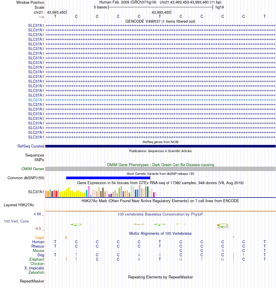 - SP1[chr21:43993450-43993460]