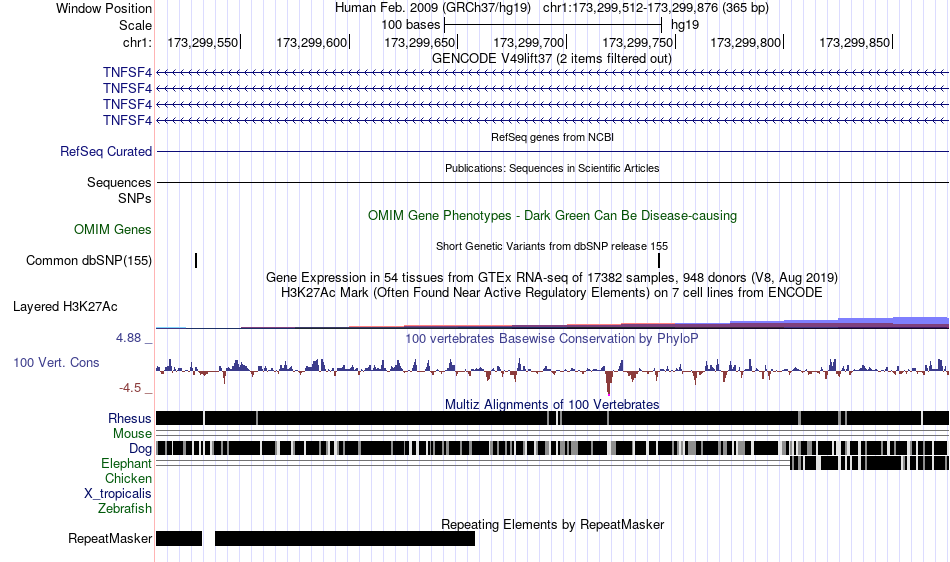 Tissues that enhancer appears |