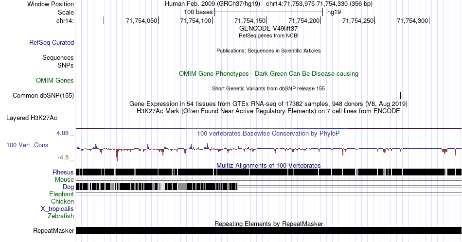 - ZNF143[chr14:71753975-71754330]