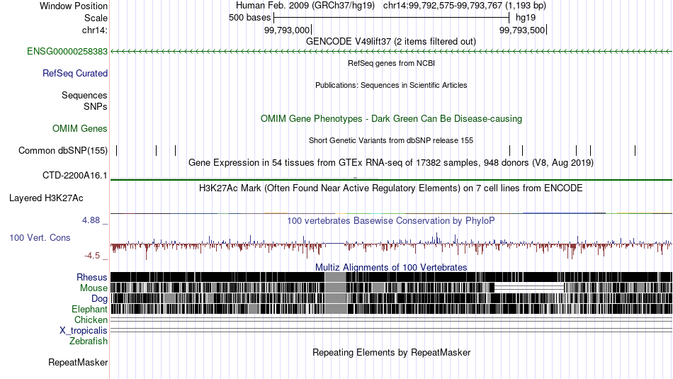 | chr14 | 99793494 | rs374640297 | G | A | 3781213 | |