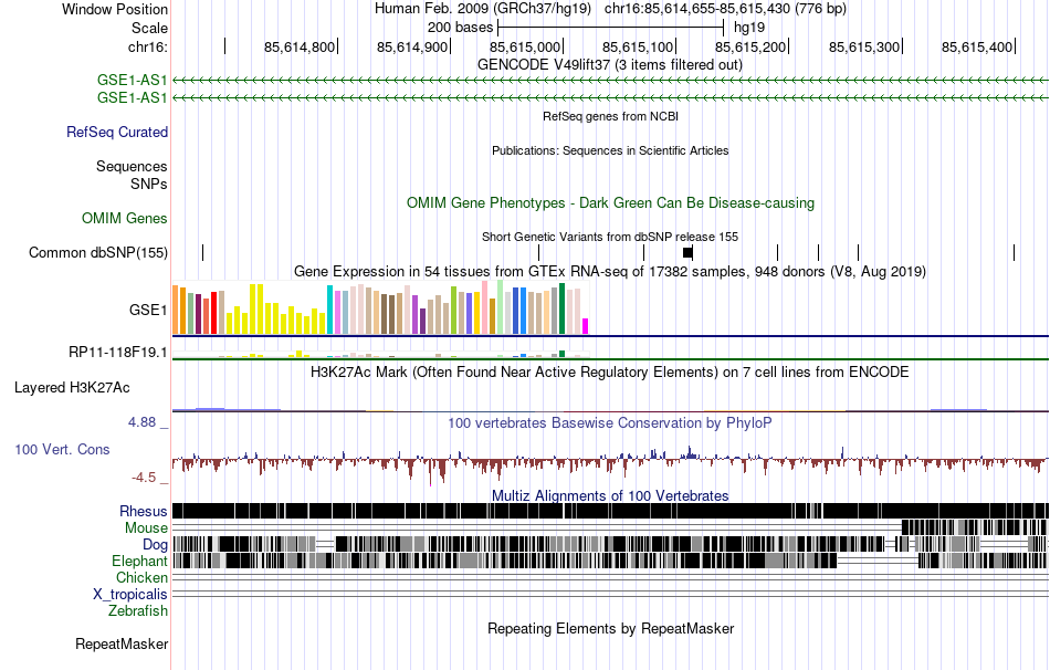 | chr16 | 85615278 | rs562843774 | G | A | 4625767 | |