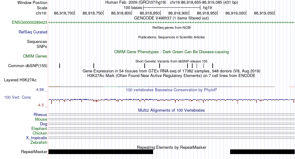 - ZNF143[chr16:86918655-86919085]