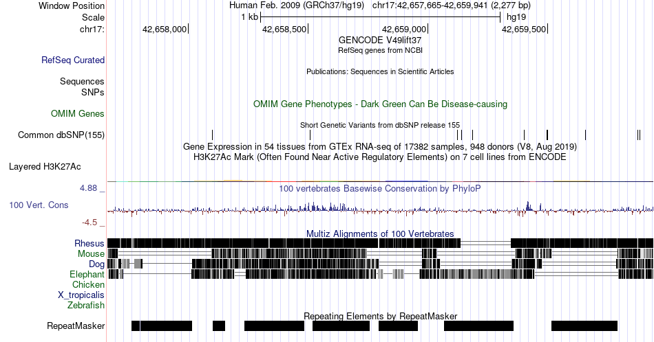 | chr17 | 42659326 | rs543353619 | G | A | 4890541 | |