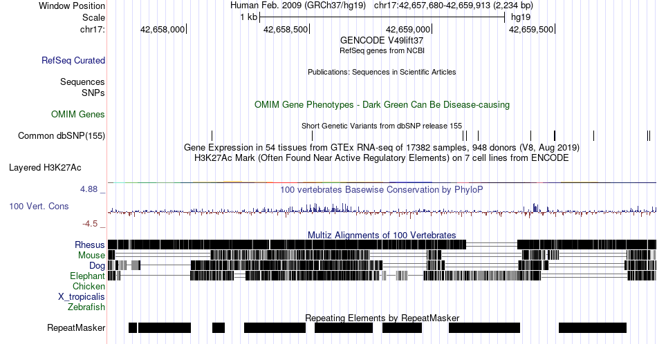 | chr17 | 42659043 | rs115328054 | G | A | 4890535 | |