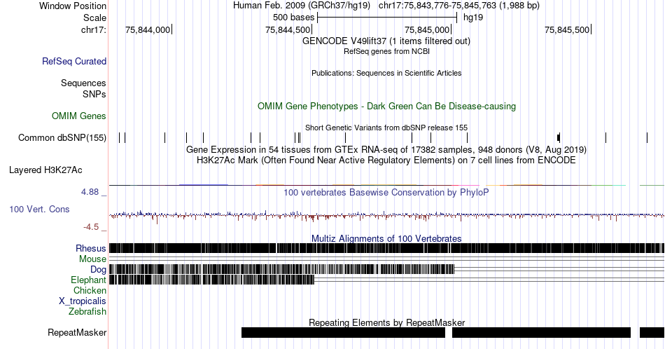 | chr17 | 75844956 | rs564964570 | G | A | 5080310 | |