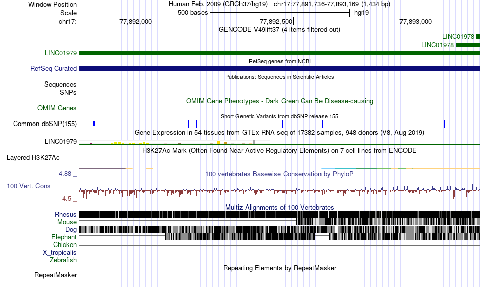 | chr17 | 77891917 | rs529173696 | G | A | 5098241 | |
