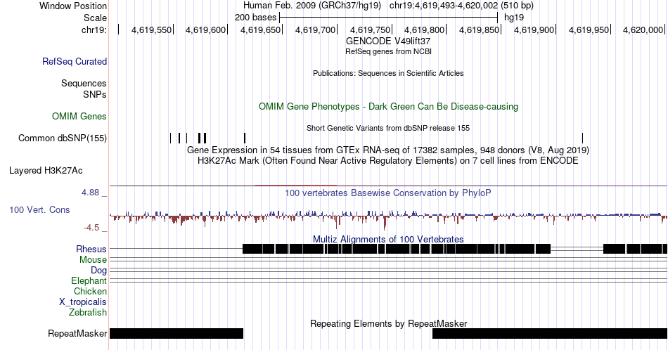 | chr19 | 4619816 | rs547916021 | G | A,C | 5401919 | |