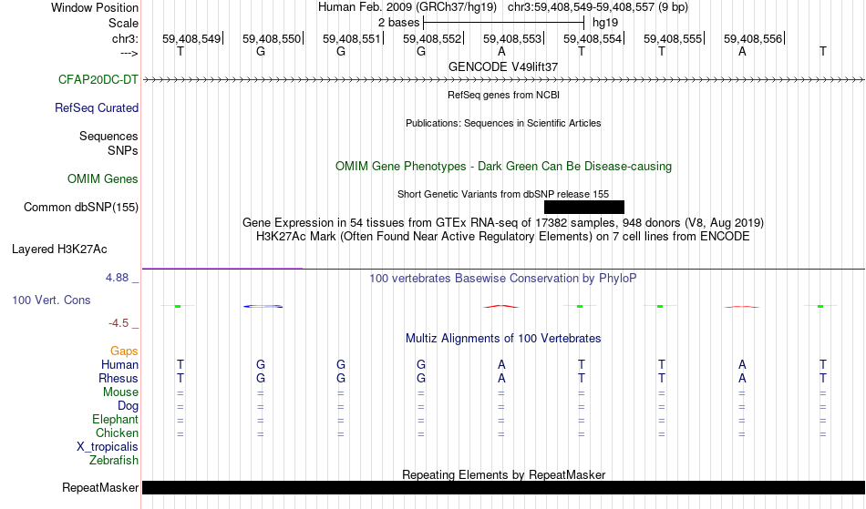 - RHOXF1[chr3:59408549-59408557]