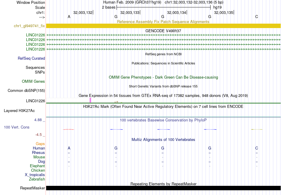 - LFA1[chr1:32003132-32003136]