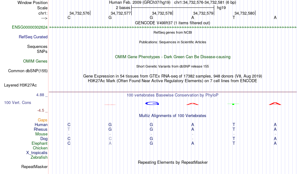 - GATA2[chr1:34732576-34732581]