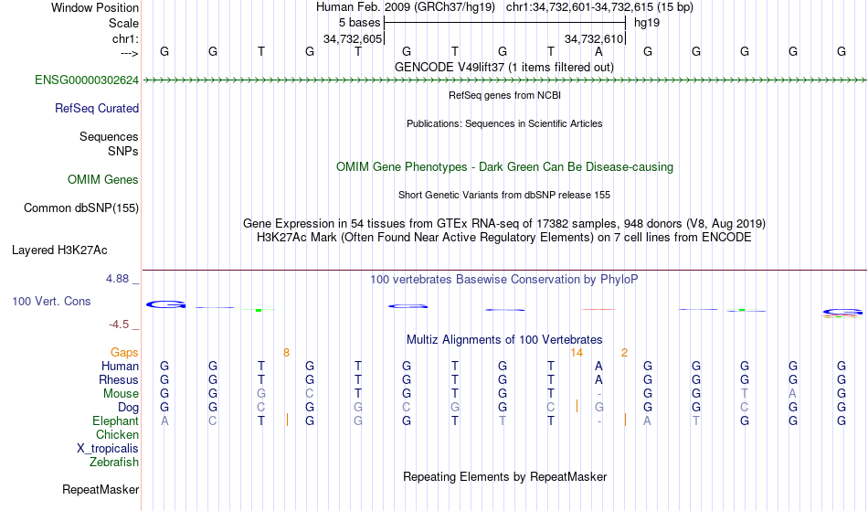 - PLAG1[chr1:34732601-34732615]