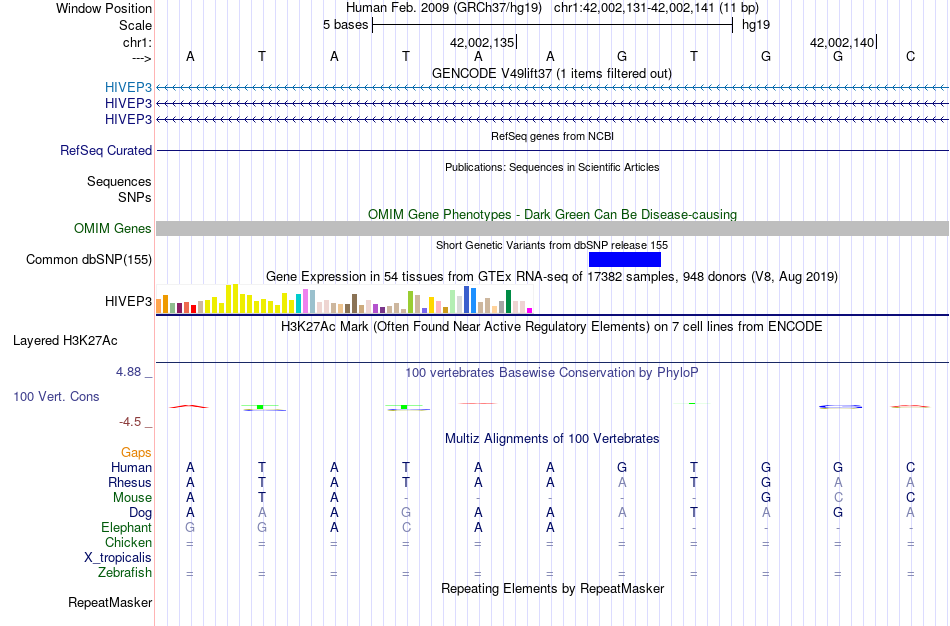 - NKX2-3[chr1:42002131-42002141]