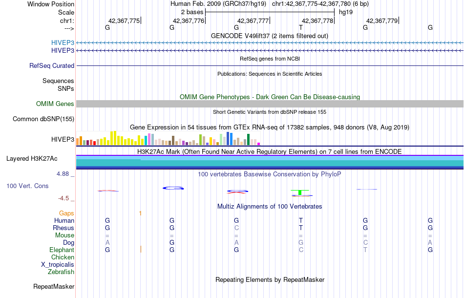 - SP1[chr1:42367775-42367780]