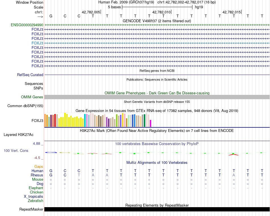 - FOXP1[chr1:42782002-42782017]