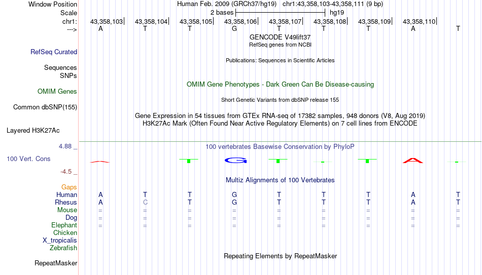 - FOXO3[chr1:43358103-43358111]