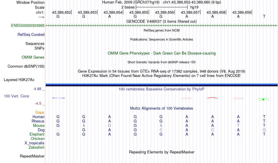 - FEV[chr1:43389652-43389660]