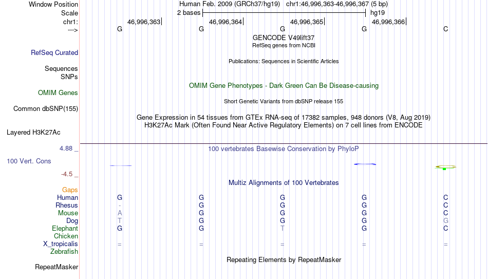 - LFA1[chr1:46996363-46996367]
