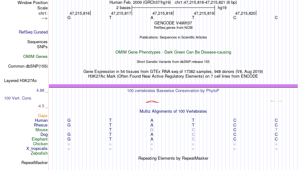 - GATA2[chr1:47215816-47215821]