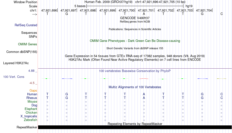 - CDX1[chr1:47921696-47921705]