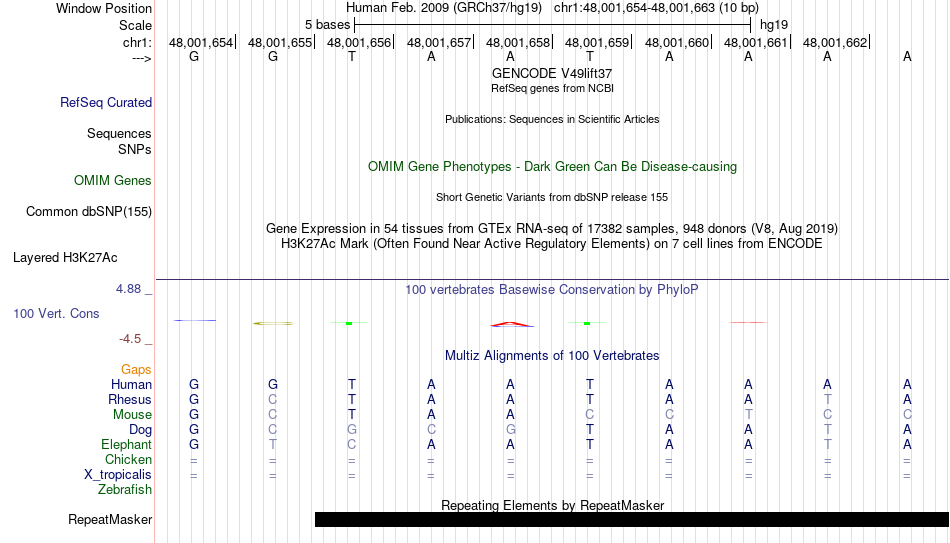 - CDX1[chr1:48001654-48001663]