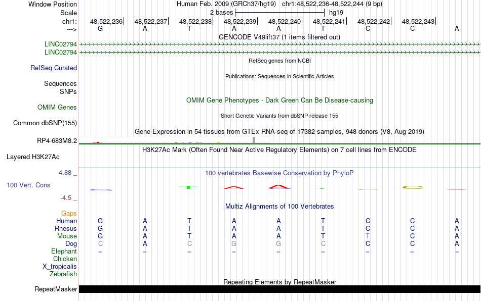 - RHOXF1[chr1:48522236-48522244]