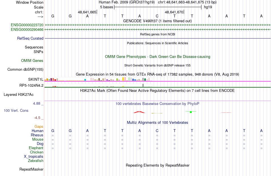 - TEF[chr1:48641663-48641675]