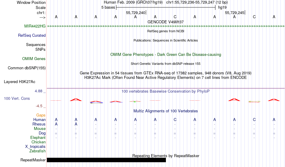 - FOXA1[chr1:55729236-55729247]