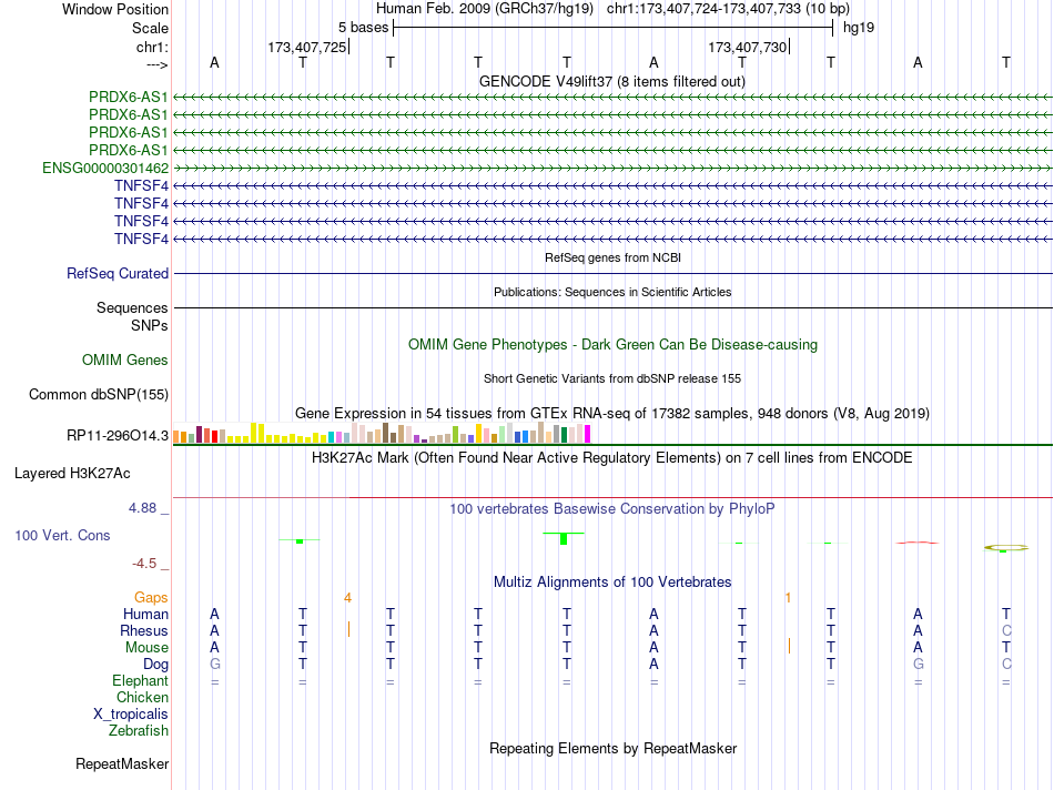 - CDX1[chr1:173407724-173407733]