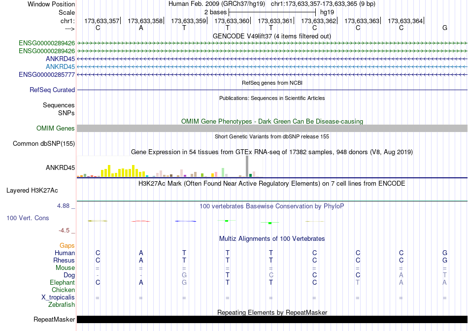 - FEV[chr1:173633357-173633365]