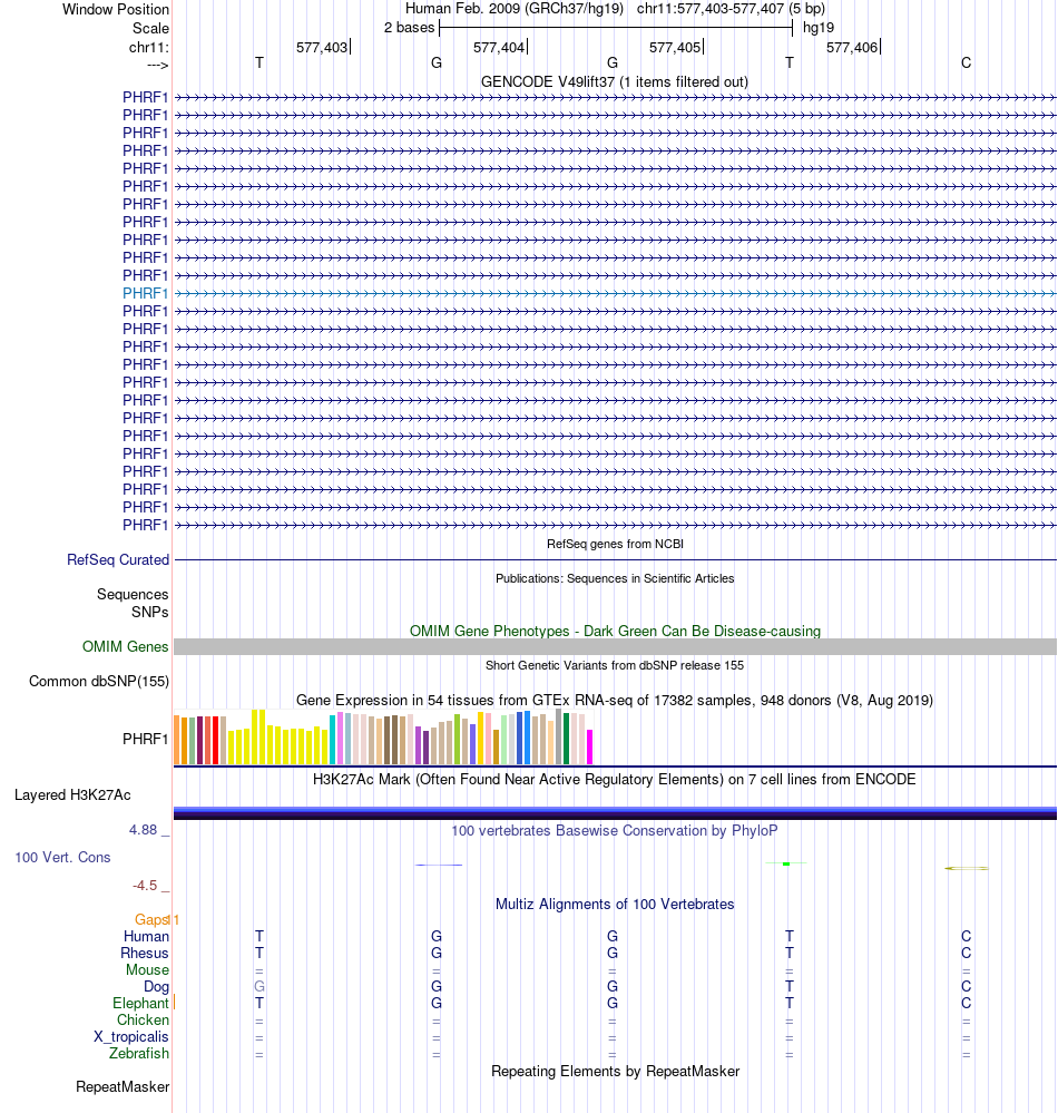 - ESR1[chr11:577403-577407]
