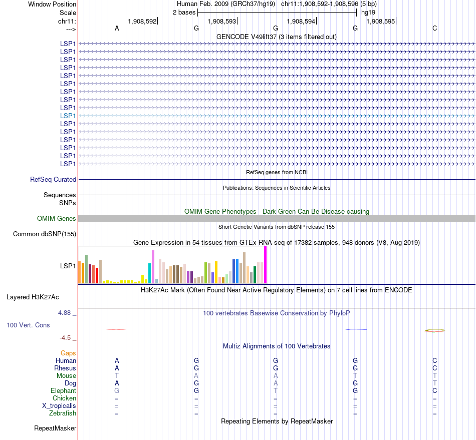 - LFA1[chr11:1908592-1908596]