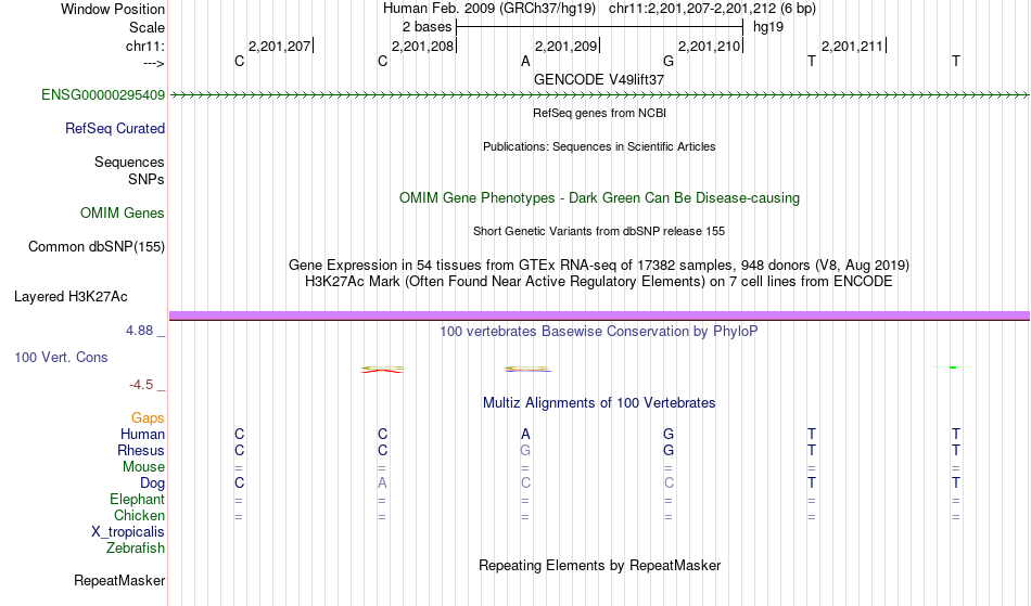 - MYC[chr11:2201207-2201212]