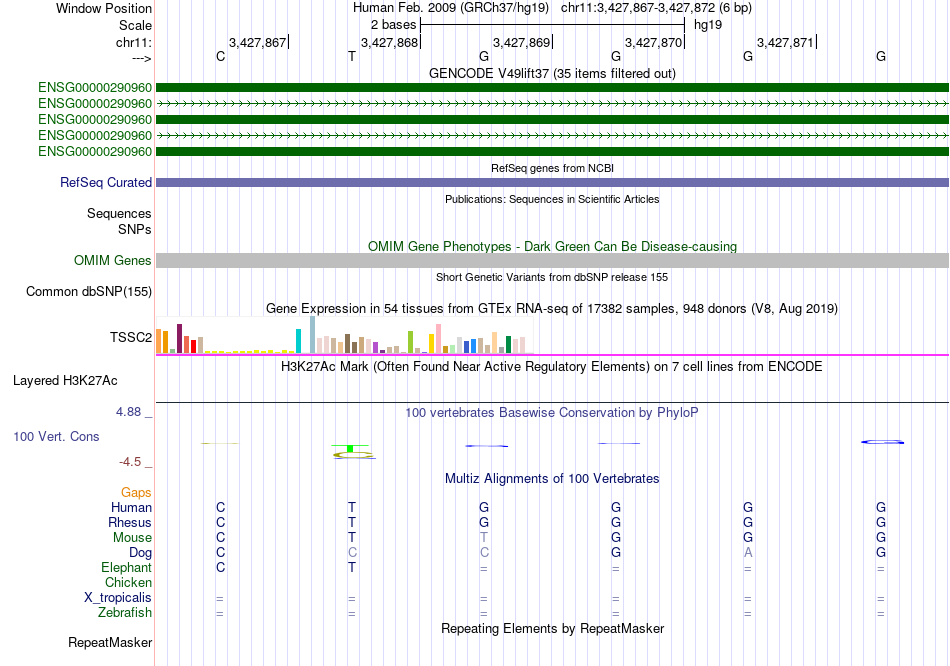 - TFAP2A[chr11:3427867-3427872]