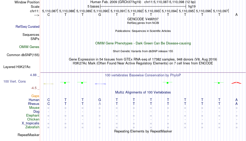 - FOXC1[chr11:5110087-5110098]