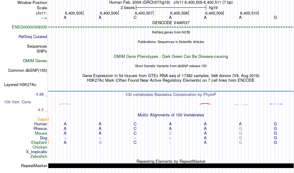 - SOX10[chr11:6400505-6400511]