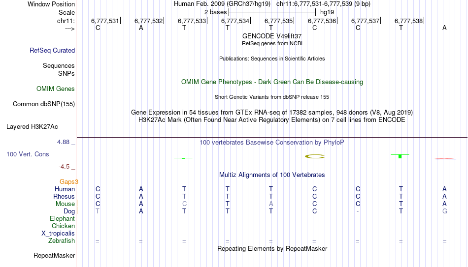 - FEV[chr11:6777531-6777539]