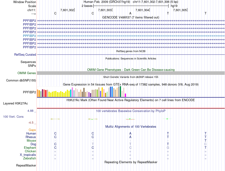- YY1[chr11:7601302-7601306]