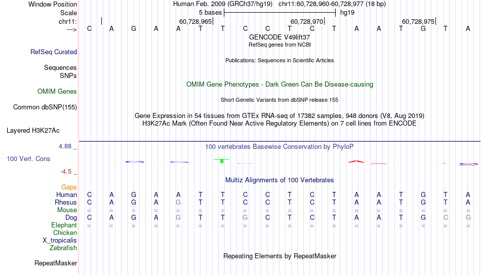 - BCL6B[chr11:60728960-60728977]