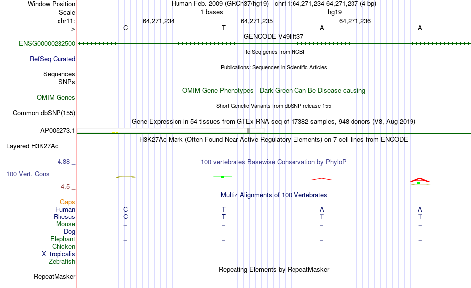 - MYB[chr11:64271234-64271237]