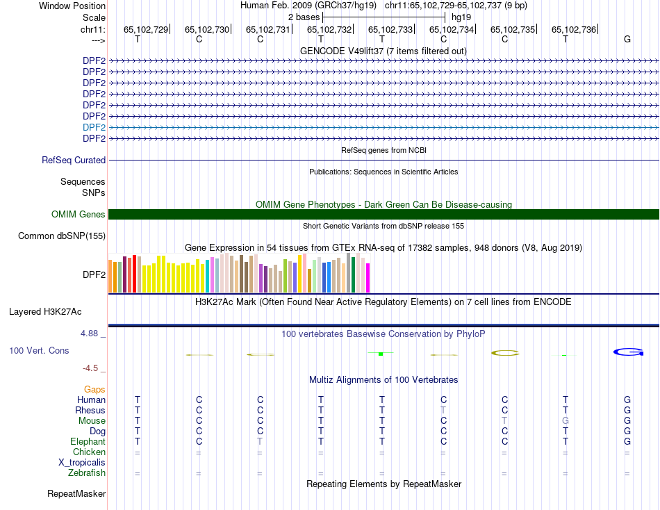 - EHF[chr11:65102729-65102737]