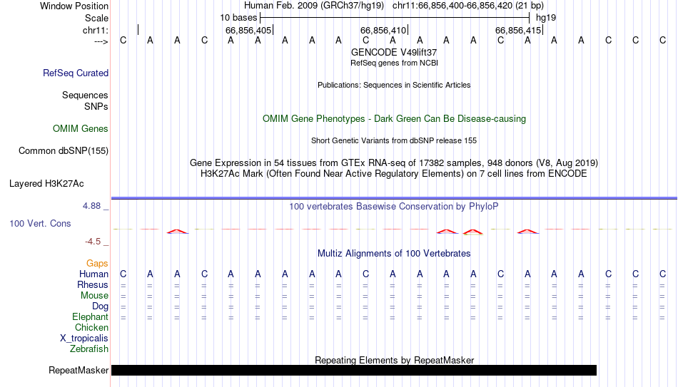 - RREB1[chr11:66856400-66856420]