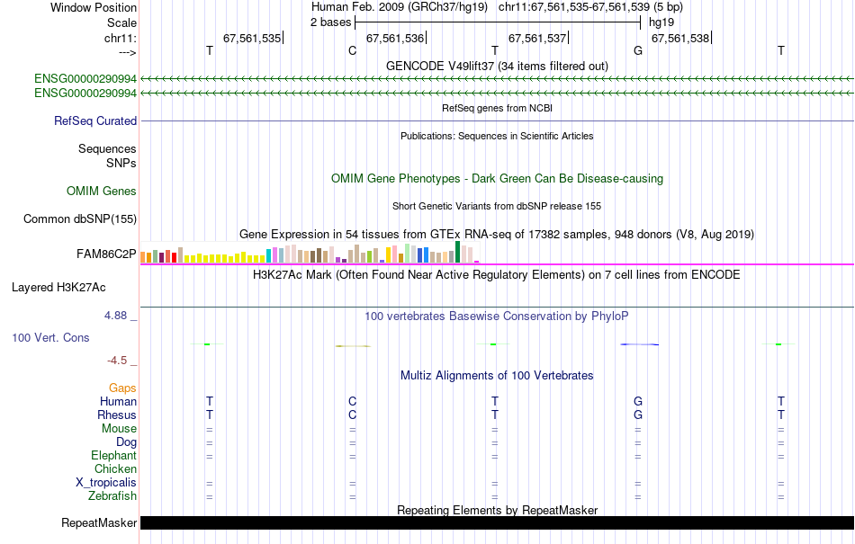- NFE[chr11:67561535-67561539]