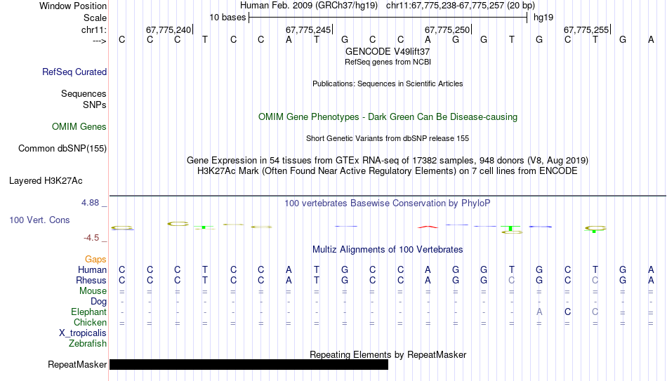 - REST[chr11:67775238-67775257]